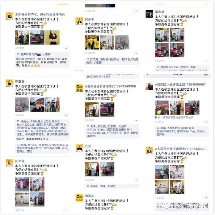 现场进行了分组晒圈PK大赛,各队员都积极转发朋友圈,展示自己的同时,也为自己的团队加分。